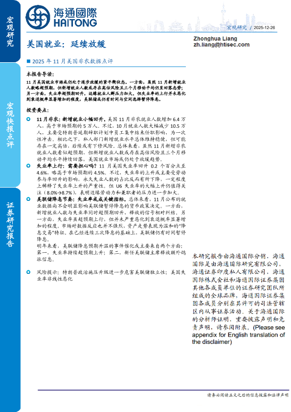 【海通国际】【202512】2025年11月美国非农数据点评:美国就业:延续放缓-12页