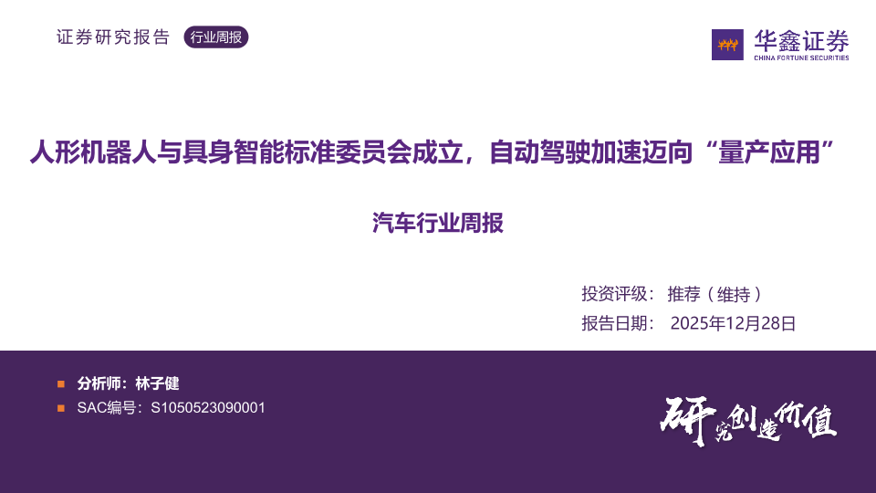 【华鑫证券】【202512】汽车行业周报:人形机器人与具身智能标准委员会成立,自动驾驶加速迈向“量产应用”-39页