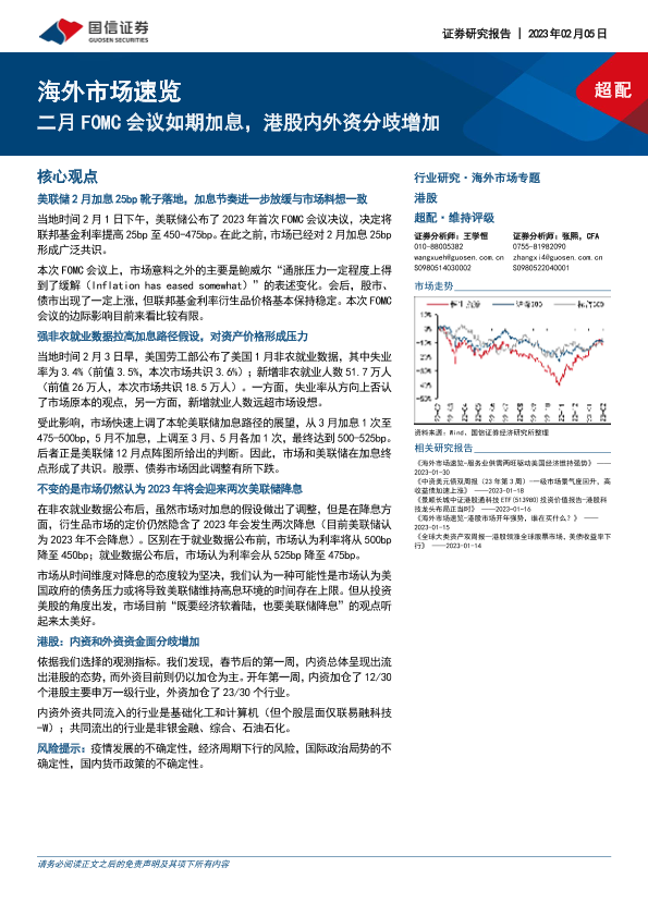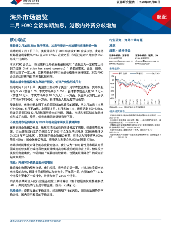 【国信证券】【20230205】海外市场速览:二月FOMC会议如期加息,港股内外资分歧增加-17页
