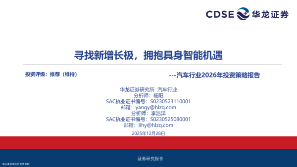 【华龙证券】【2025】汽车行业2026年投资策略报告:寻找新增长极,拥抱具身智能机遇-30页
