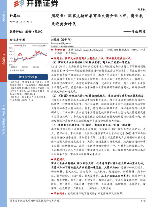 【开源证券】【202512】计算机行业周报:国家支持优质商业火箭企业上市,商业航天迎黄金时代-8页