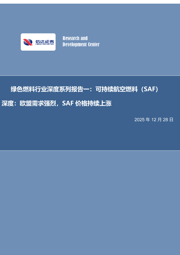 【信达证券】【202512】绿色燃料行业深度系列报告一:可持续航空燃料(SAF)深度:欧盟需求强烈,SAF价格持续上涨-30页