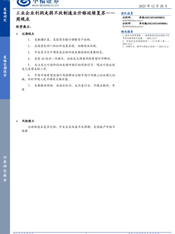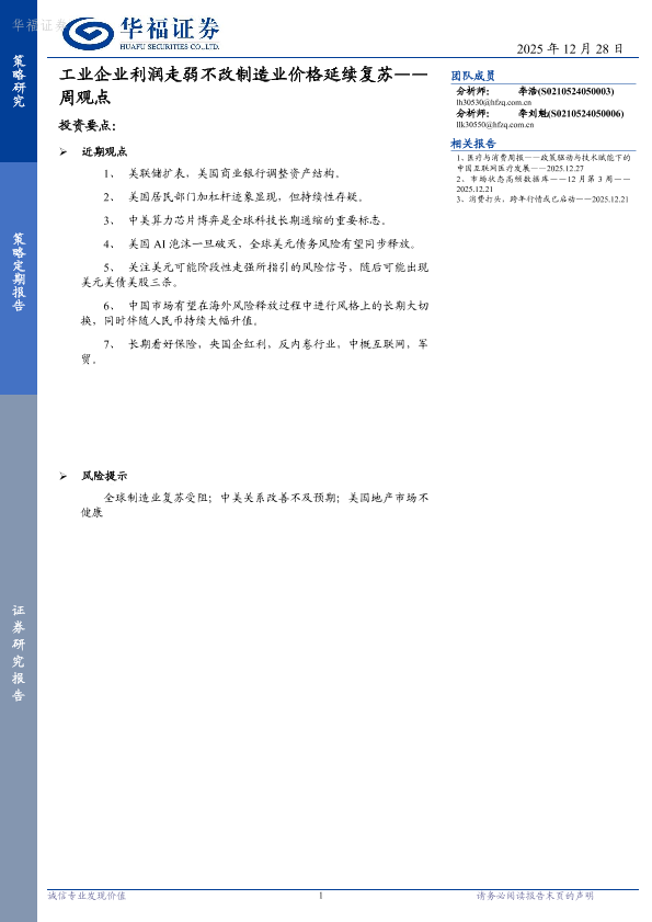 【华福证券】【202512】工业企业利润走弱不改制造业价格延续复苏——周观点-10页