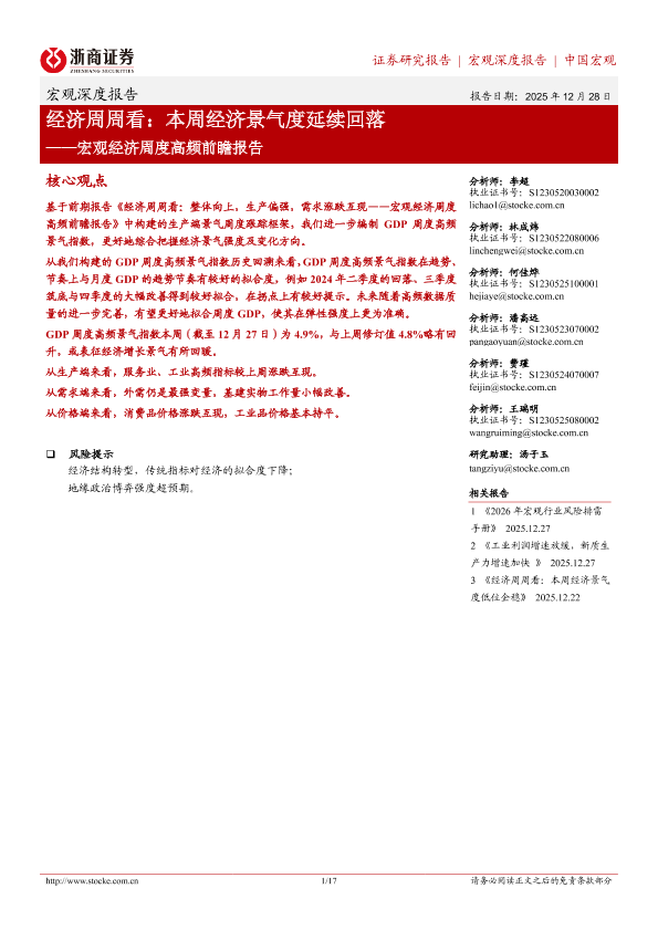 【浙商证券】【202512】经济周周看:本周经济景气度延续回落——宏观经济周度高频前瞻报告-17页