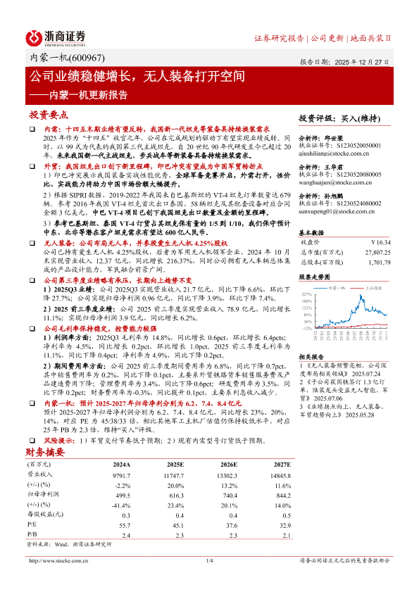 【浙商证券】【202512】公司业绩稳健增长,无人装备打开空间——内蒙一机更新报告-4页
