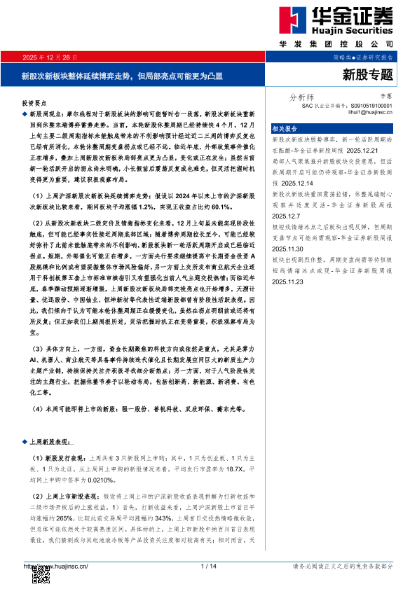【华金证券】【202512】新股次新板块整体延续博弈走势,但局部亮点可能更为凸显-14页