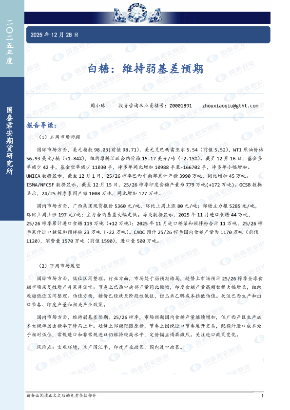 【国泰君安期货】【202512】白糖:维持弱基差预期-8页