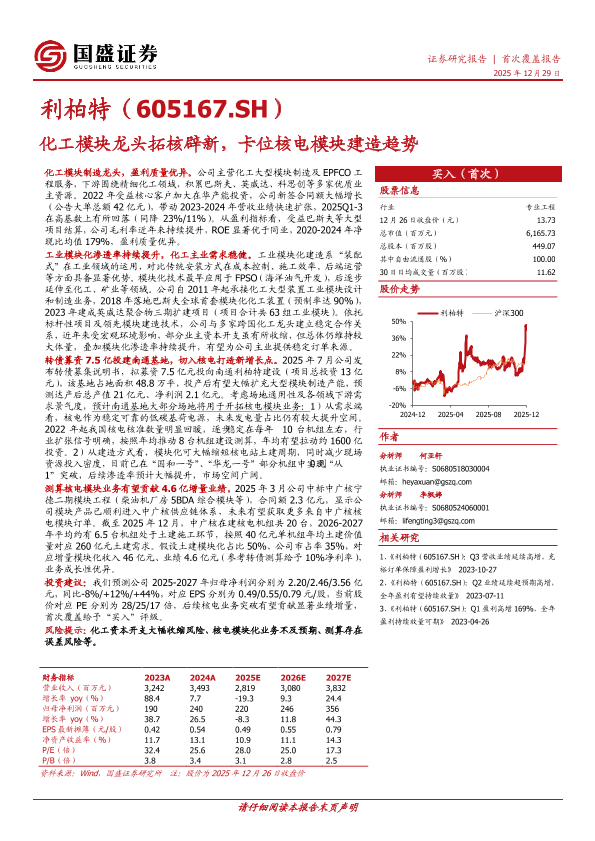 【国盛证券】【202512】利柏特(605167.SH):化工模块龙头拓核辟新,卡位核电模块建造趋势-26页