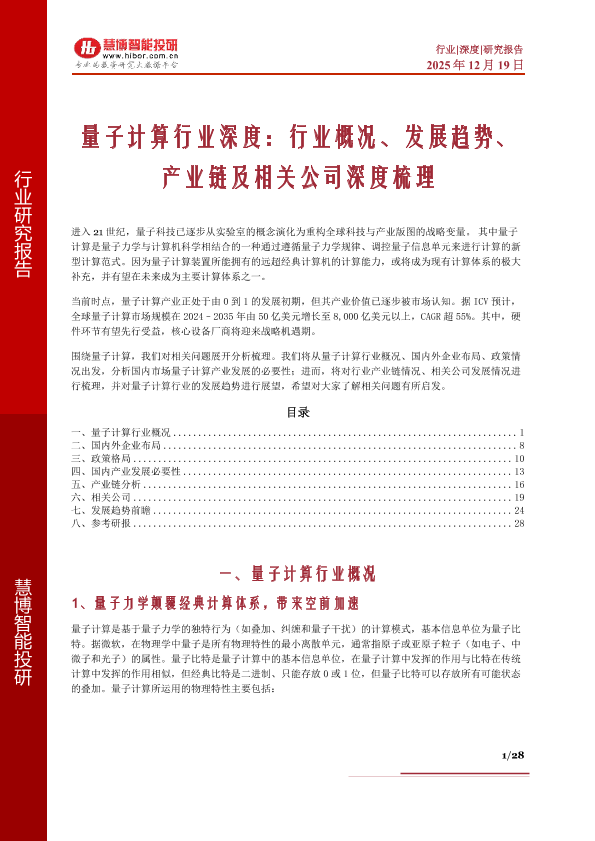 【慧博智能投研】【202512】量子计算行业深度:行业概况、发展趋势、 产业链及相关公司深度梳理-28页