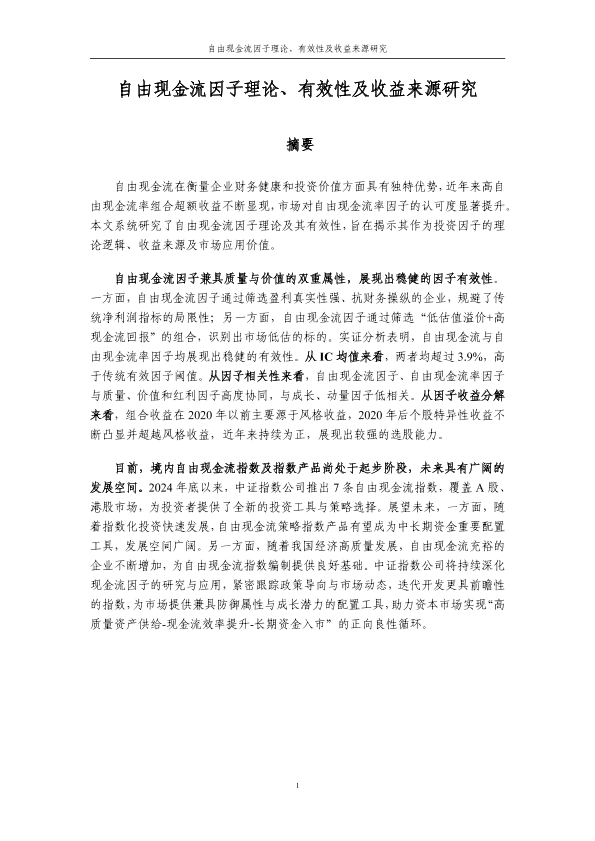 【中证指数】【2025】自由现金流因子理论、有效性及收益来源研究-18页