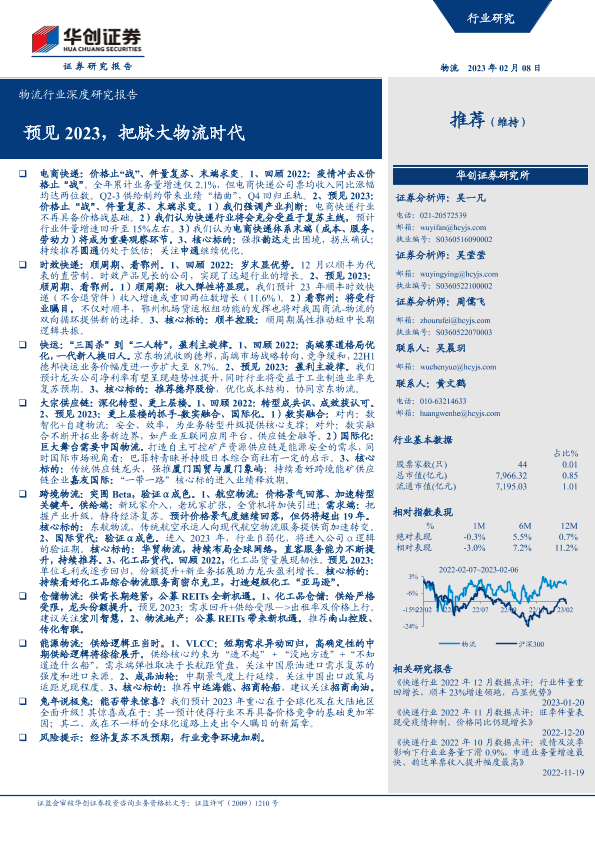 华创证券 交通运输仓储邮政 2023年 PDF 7.99 MB