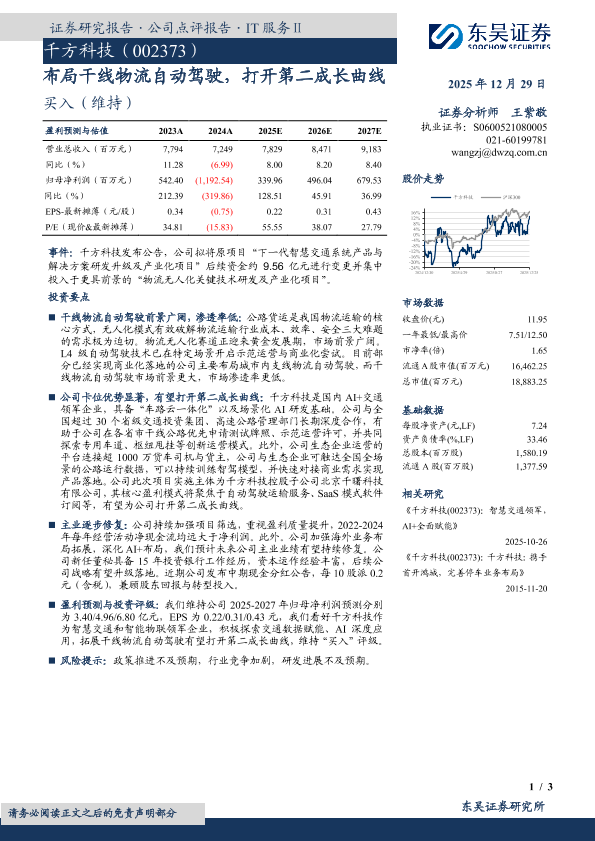 【东吴证券】【202512】布局干线物流自动驾驶,打开第二成长曲线-3页