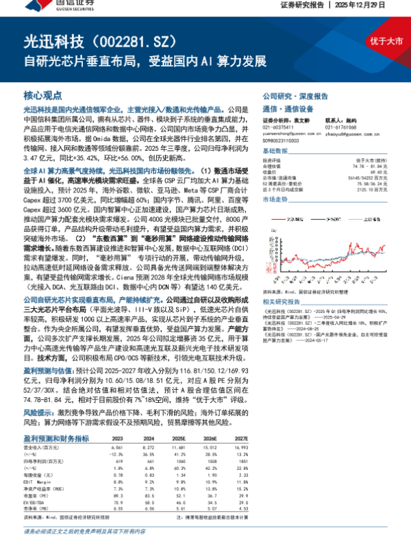 【国信证券】【2025】自研光芯片垂直布局,受益国内AI算力发展-41页