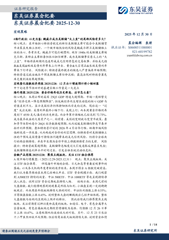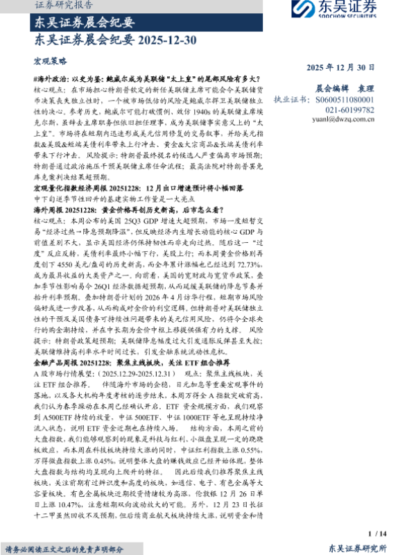 【东吴证券】【202512】东吴证券晨会纪要 2025-12-30-14页