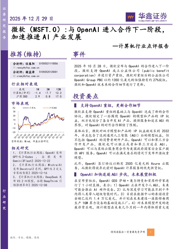 【华鑫证券】【202512】微软:与OpenAI进入合作下一阶段,加速推进AI产业发展-4页