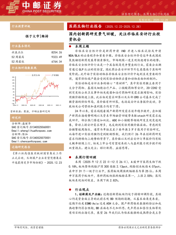 【中邮证券】【202512】国内创新药研发景气回暖,关注非临床安评行业投资机会-15页