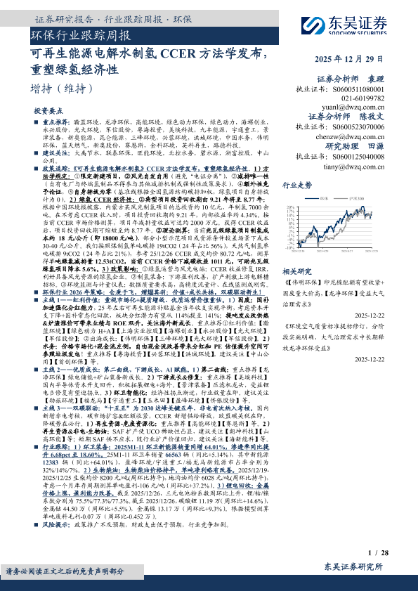 【东吴证券】【202512】环保行业跟踪周报:可再生能源电解水制氢CCER方法学发布,重塑绿氢经济性-28页