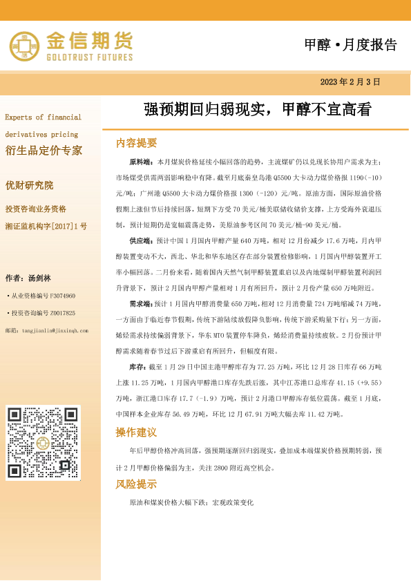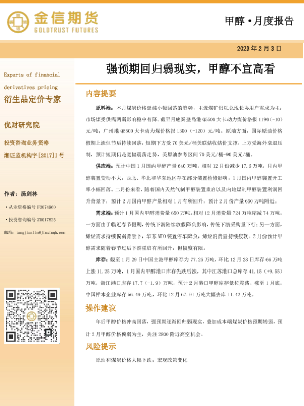 【金信期货】【20230203】甲醇·月度报告:强预期回归弱现实,甲醇不宜高看-15页