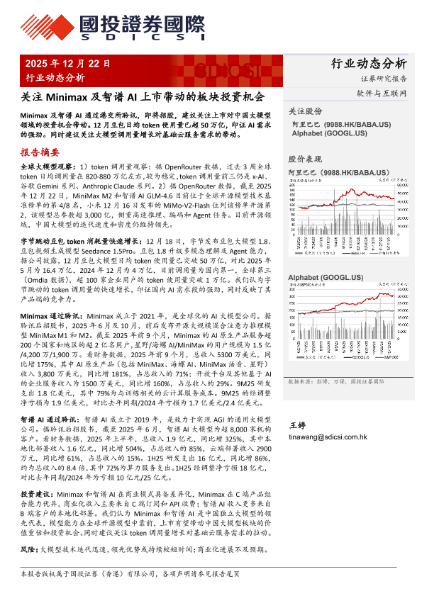 【国投证券(香港)有限公司】【202512】关注Minimax及智谱AI上市带动的板块投资机会-6页