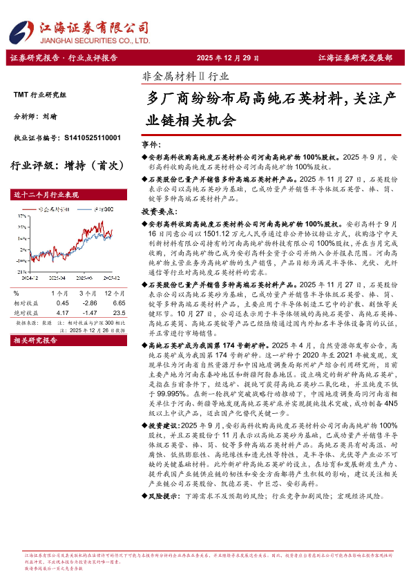 【江海证券】【2025】多厂商纷纷布局高纯石英材料,关注产业链相关机会-3页