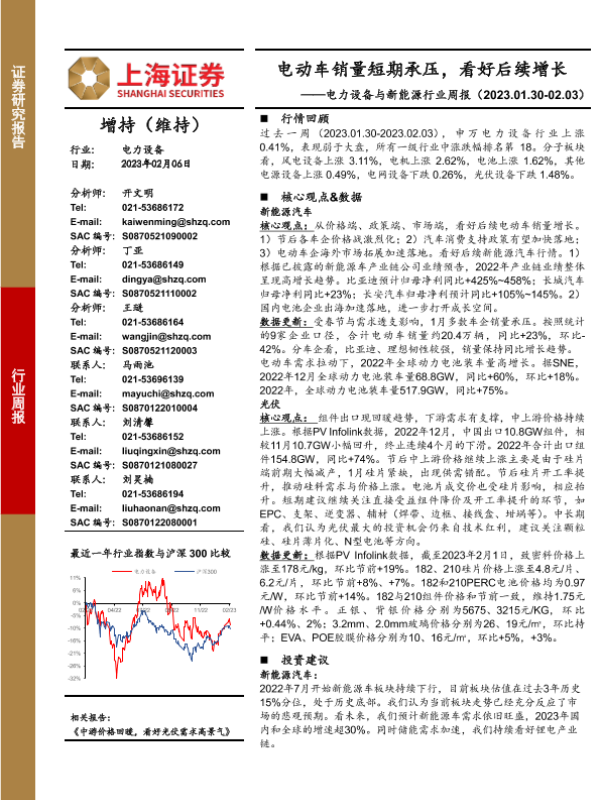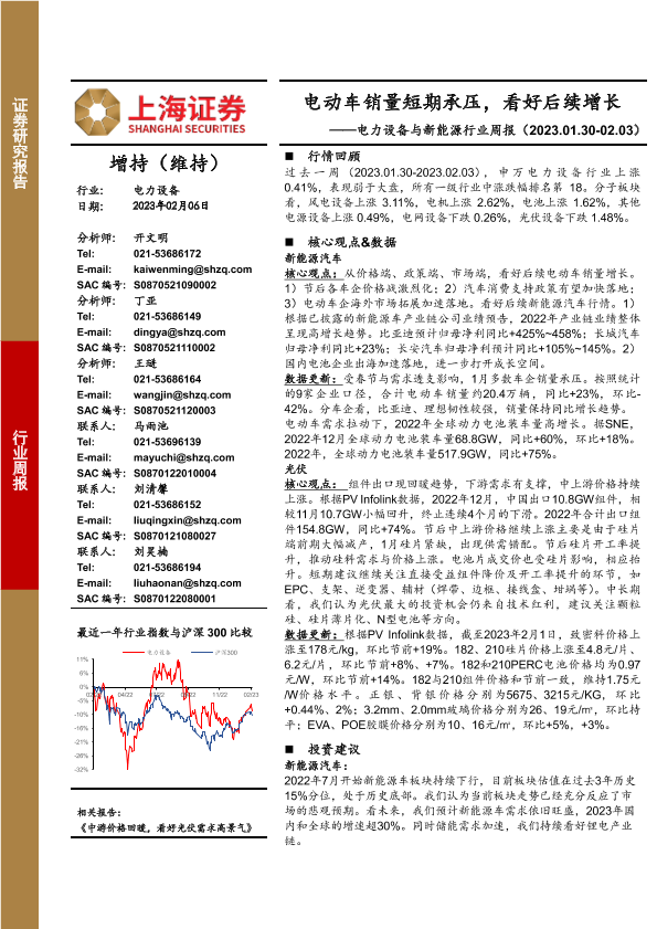 【上海证券】【20230206】电力设备与新能源行业周报:电动车销量短期承压,看好后续增长-23页