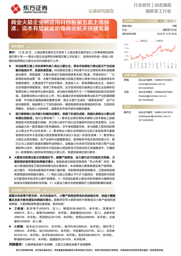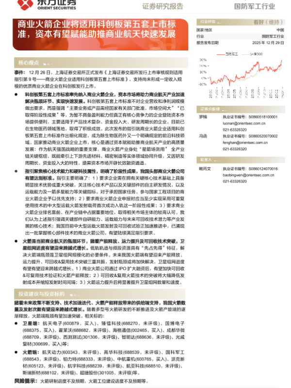 【东方证券】【202512】国防军工行业动态跟踪_商业火箭企业将适用科创板第五套上市标准_资本有望赋能助推商业航天快速发展-3页