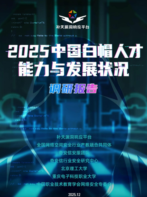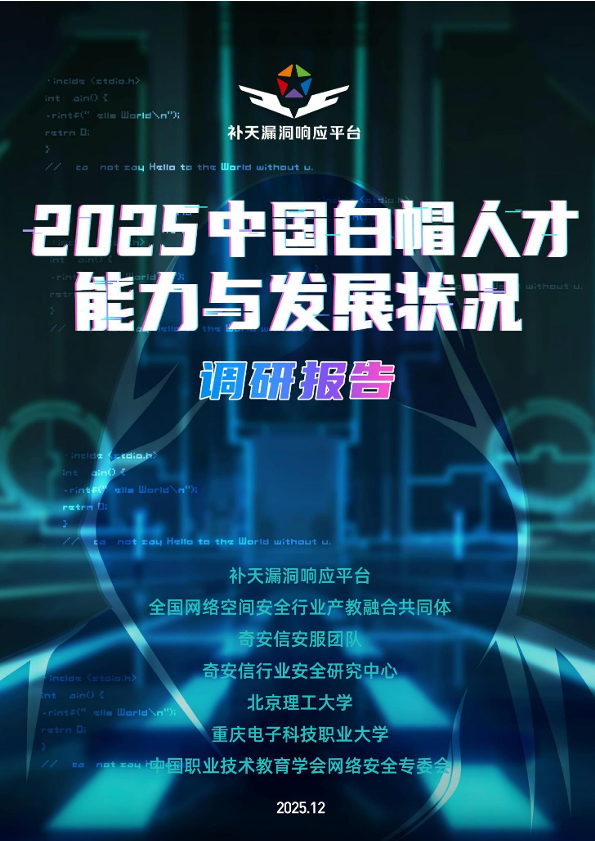 【补天漏洞响应平台&全国网络空间安全行业产教融合共同体&奇安信安服团队&奇安信行业安全研究中心&北京理工大学&重庆电子科技职业大学&中国职业技术教育学会网络安全专委会】【202512】2025中国白帽人才能力与发展状况调研报告-25页