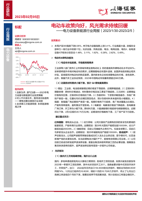 【东海证券】【20230205】电力设备新能源行业周报:电动车政策向好,风光需求持续回暖-31页