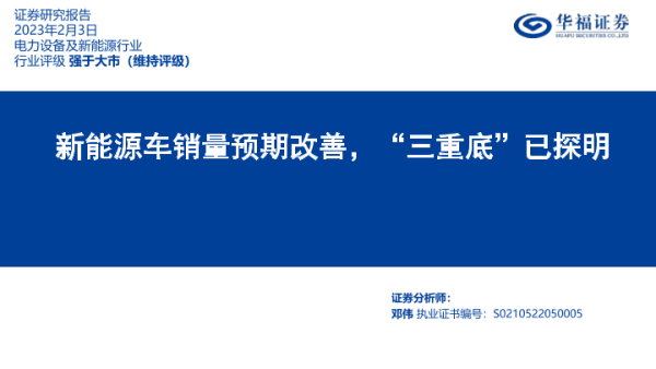 【华福证券】【20230203】电力设备及新能源行业:新能源车销量预期改善,“三重底”已探明-34页
