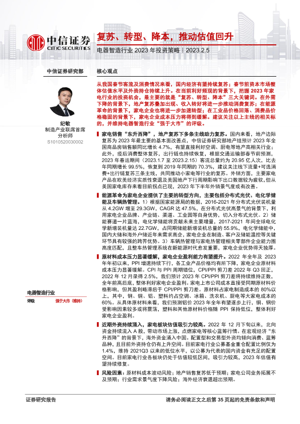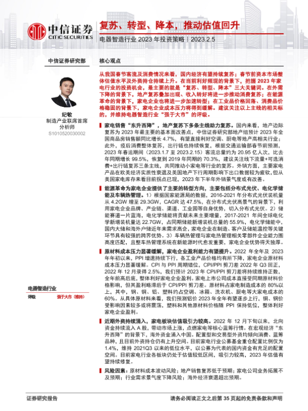 【中信证券】【20230205】电器智造行业2023年投资策略:复苏、转型、降本,推动估值回升-36页
