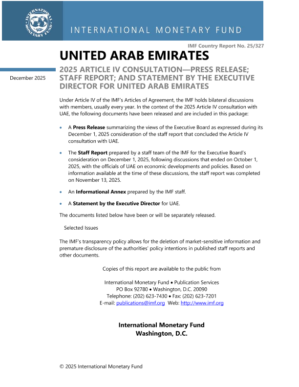 【国际货币基金组织】【202512】2025 Article IV Consultation—Press Release; Staff Report; and Statement by the Executive Director for United Arab Emirates-64页