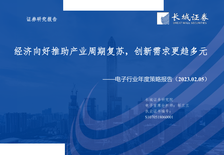 【长城证券】【20230205】电子行业年度策略报告:经济向好推助产业周期复苏,创新需求更趋多元-116页