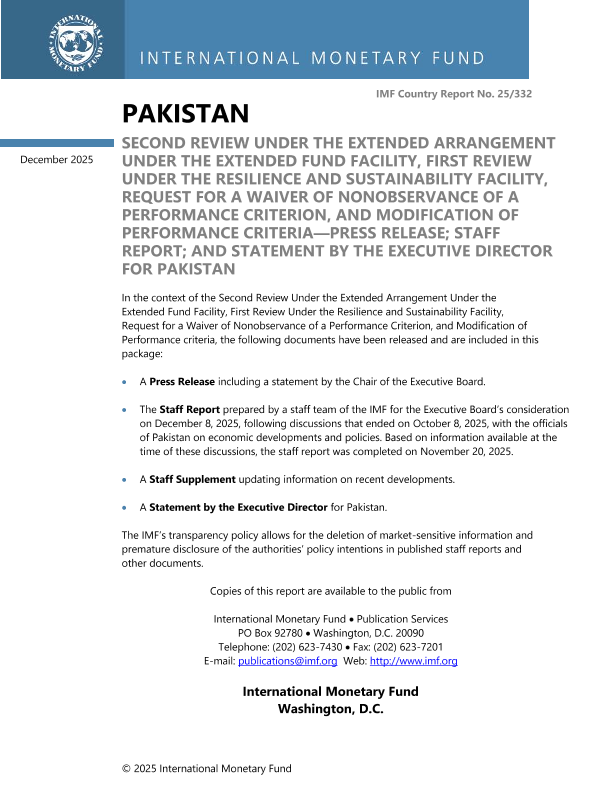 【国际货币基金组织】【202512】Pakistan Second Review Under the Extended Arrangement Under the Extended Fund Facility, First Review Under the Resilience and Sustainability Facility, Request for a Waiver of Nonobservance of a Performance Criterion, and Modification of Performance Criteria—PRESS RELEASE; STAFF REPORT; AND STATEMENT BY THE EXECUTIVE DIRECTOR FOR PAKISTAN-117页