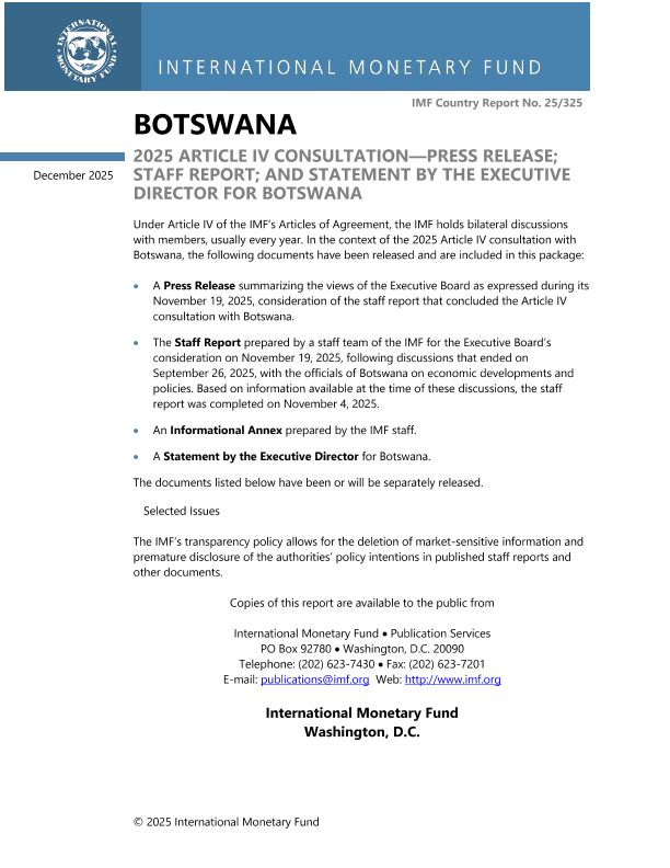 【国际货币基金组织】【202512】2025 Article IV Consultation—Press Release; Staff Report; and Statement by the Executive Director for Botswana-87页