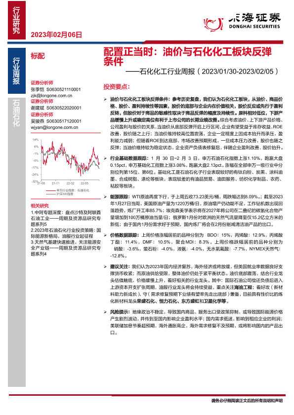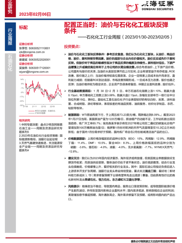 【东海证券】【20230206】石化化工行业周报:配置正当时,油价与石化化工板块反弹条件-24页