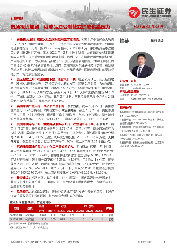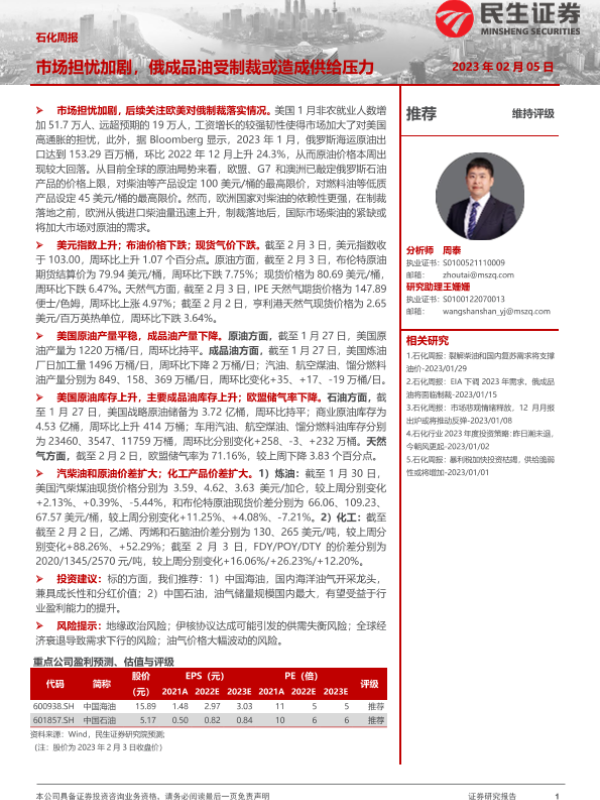 【民生证券】【20230205】石化周报:市场担忧加剧,俄成品油受制裁或造成供给压力-29页