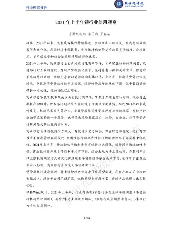 【新世纪评级】【20210630】2021年上半年银行业信用观察-35页