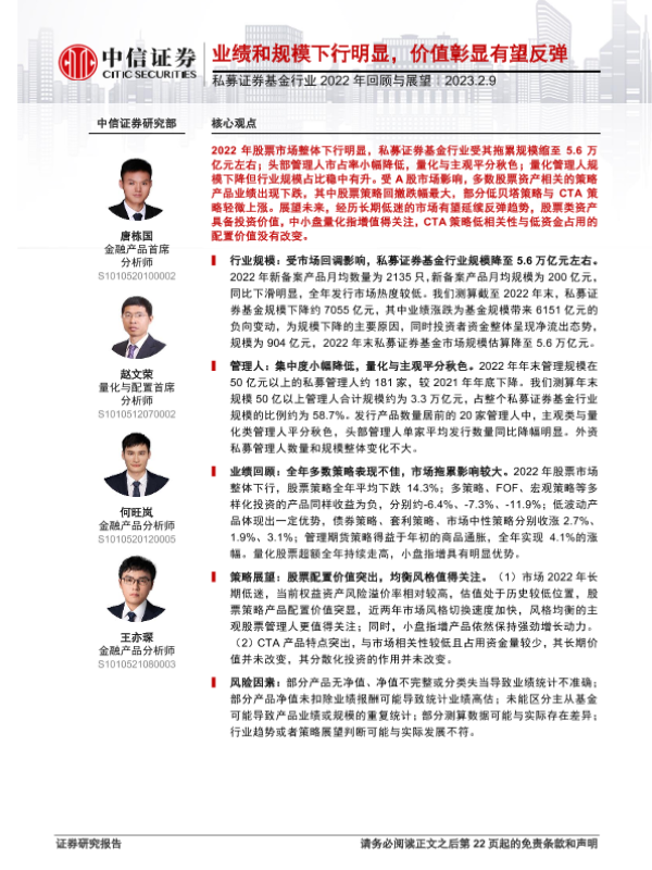 【中信证券】【20230209】私募证券基金行业2022年回顾与展望:业绩和规模下行明显,价值彰显有望反弹-23页
