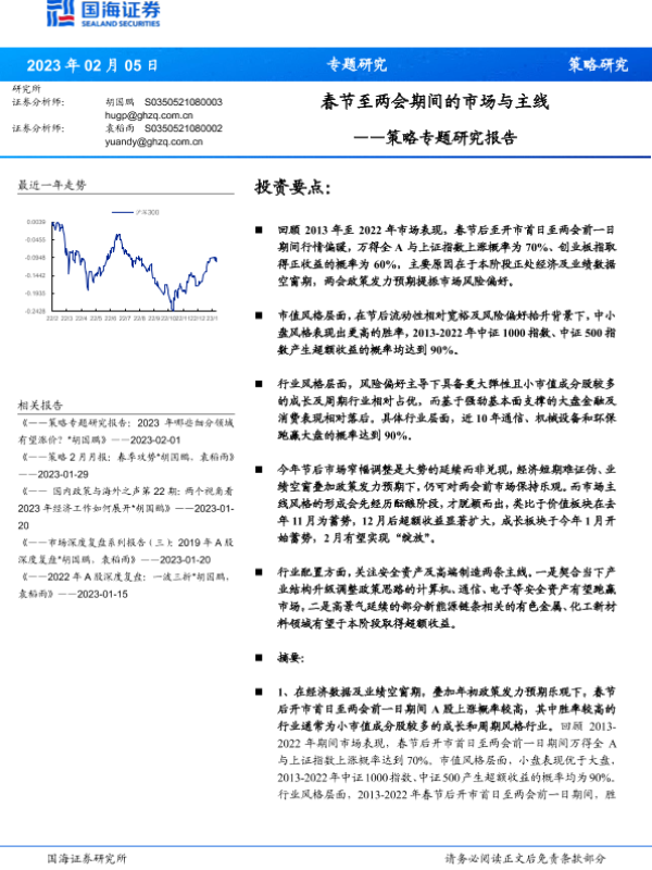【国海证券】【20230205】策略专题研究报告:春节至两会期间的市场与主线-15页