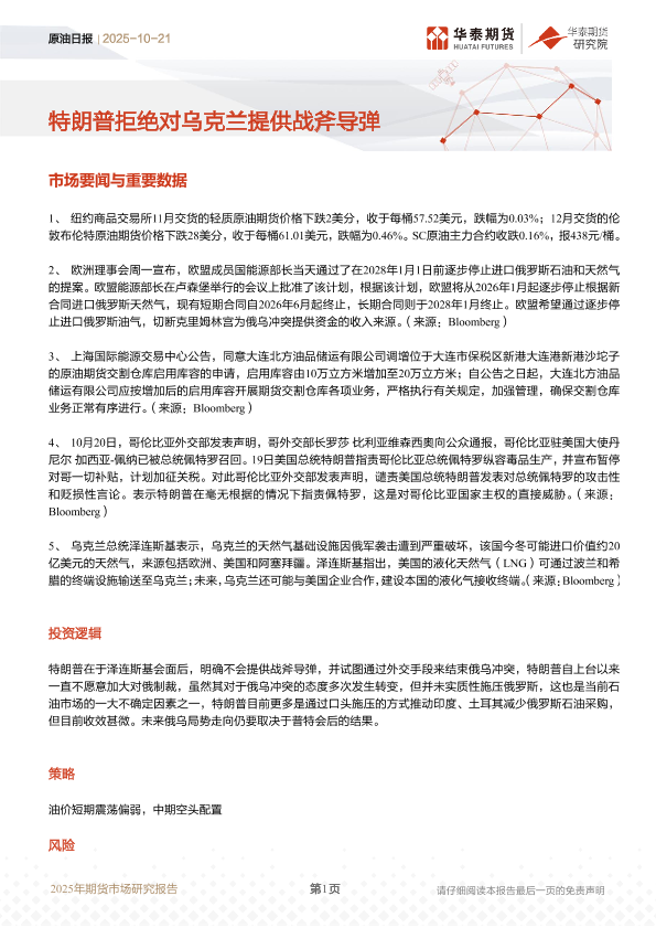 【华泰期货】【202510】原油日报 | 2025-10-21-6页