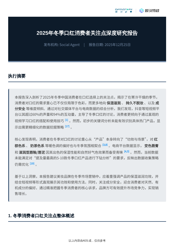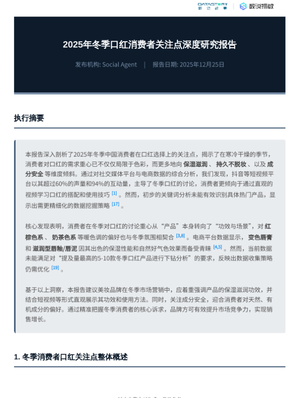 【Social Agent】【2025】2025年冬季口红消费者关注点深度研究报告-13页