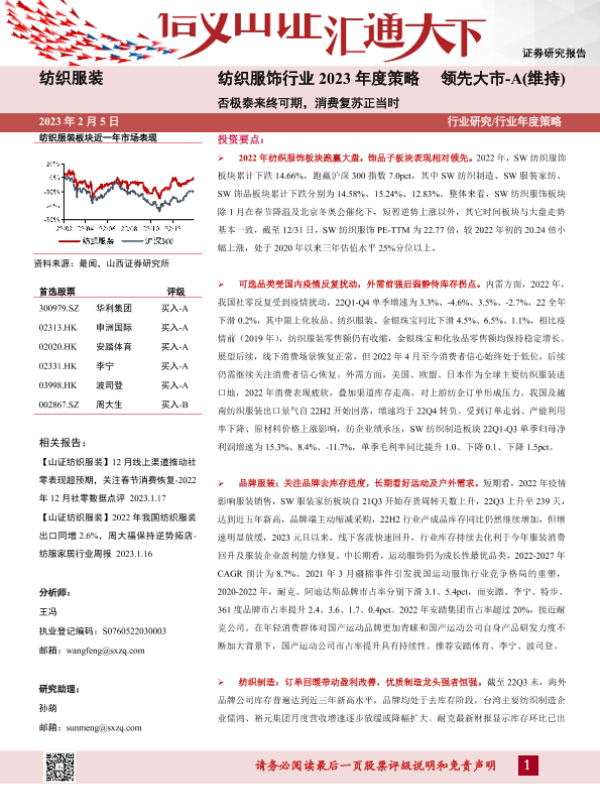 【山西证券】【20230205】纺织服饰行业2023年度策略:否极泰来终可期,消费复苏正当时-31页