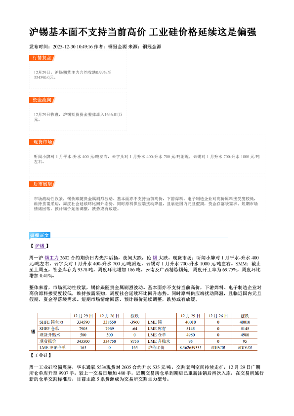 【铜冠金源期货】【202512】铜冠金源_沪锡基本面不支持当前高价 工业硅价格延续这是偏强-2页