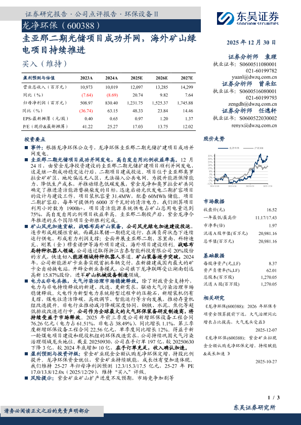 【东吴证券】【202512】圭亚那二期光储项目成功并网,海外矿山绿电项目持续推进-3页