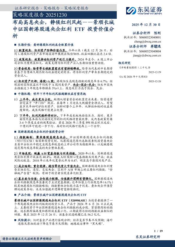 【东吴证券】【202512】布局高息央企,静候红利风起——景顺长城 中证国新港股通央企红利 ETF投资价值分析-19页