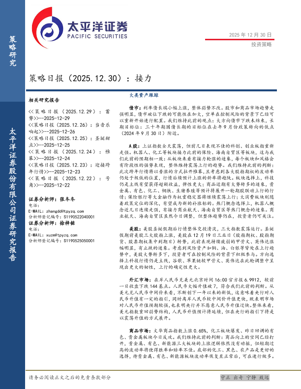 【太平洋证券】【202512】策略日报(2025.12.30):接力-12页
