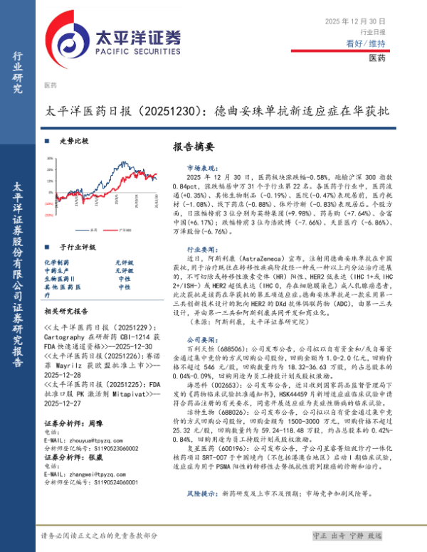 【太平洋证券】【202512】太平洋医药日报(20251230):德曲妥珠单抗新适应症在华获批-3页