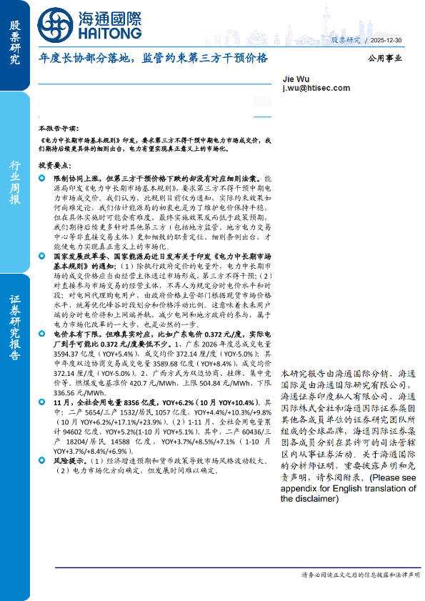【海通国际】【202512】年度长协部分落地,监管约束第三方干预价格-8页