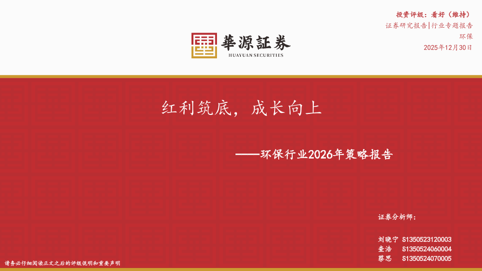 【华源证券】【202512】环保行业2026年策略报告:红利筑底,成长向上-49页
