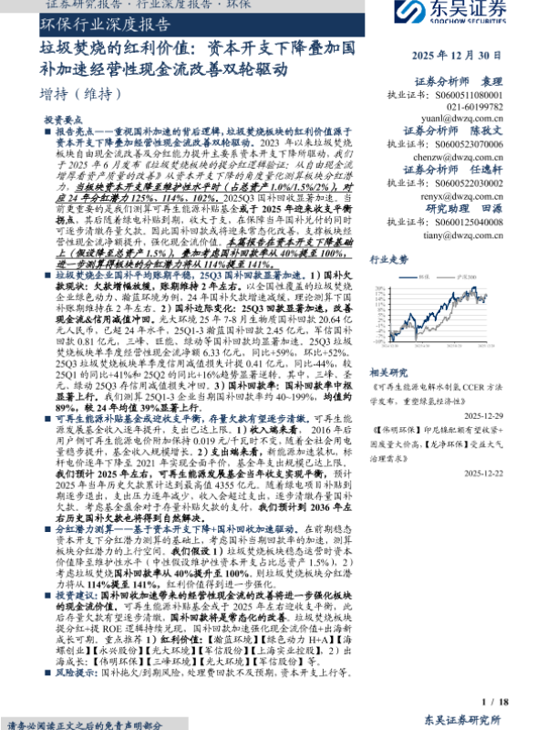 【东吴证券】【202512】垃圾焚烧的红利价值:资本开支下降叠加国补加速经营性现金流改善双轮驱动-18页